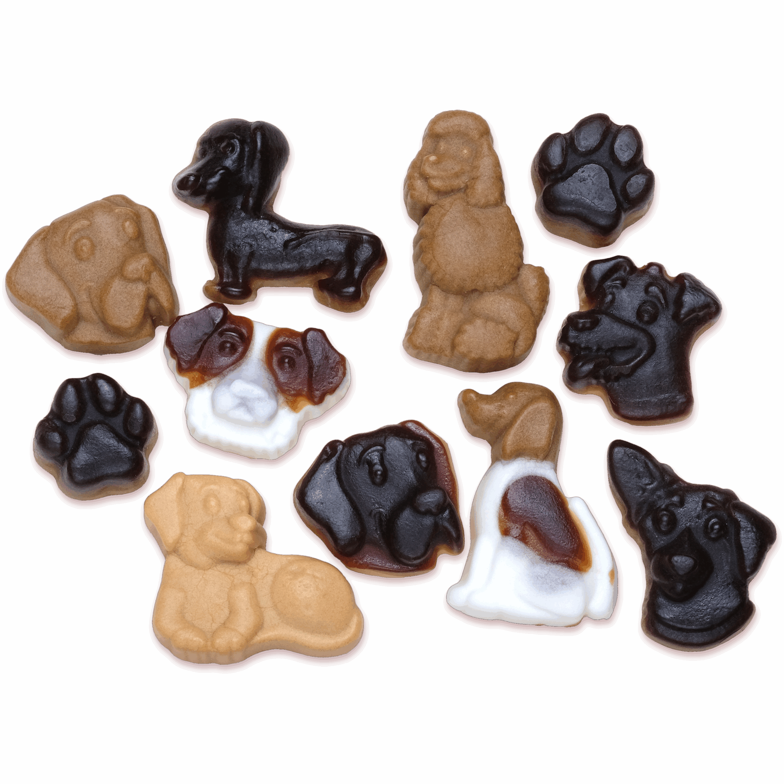glukosesirup, sukker, modificeret stivelse, druesukker, lakridsekstrakt 4%, brunt sukker sirup, aromaer, kartoffelprotein, karamelliseret sukkersirup, salt, hydrolyseret ærteprotein, solsikkeolie, overfladebehandlingsmiddel (carnaubavoks). Kan indeholde MÆLK..