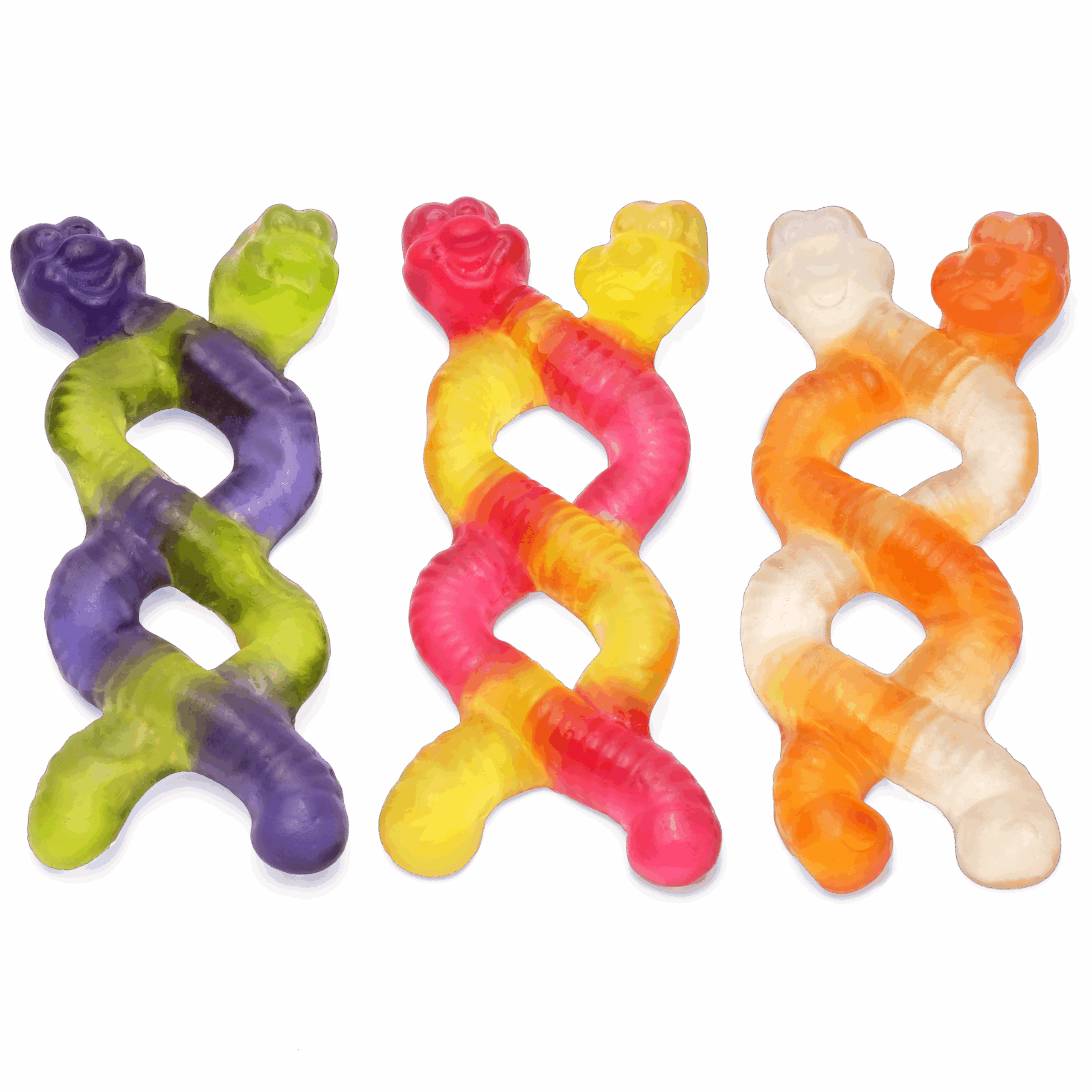 glukosesirup, sukker, gelatine, syrer (mælkesyre, æblesyre, citronsyre), fødevarefarve (solbær, paprika, gulerod, gurkemeje, spirulina), naturlige aromaer, overfladebehandlingsmidler (bivoks, carnaubavoks).