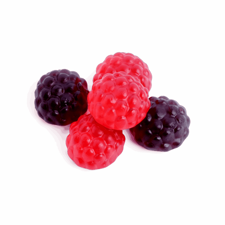 Glukosesirup, Zucker, Wasser, Gelatine, Säuerungsmittel (Zitronensäure), Aromen, pflanzliches Öl (Kokosnuss, Raps), Überzugsmittel (Carnaubawachs), Farbstoff (E120, E153).