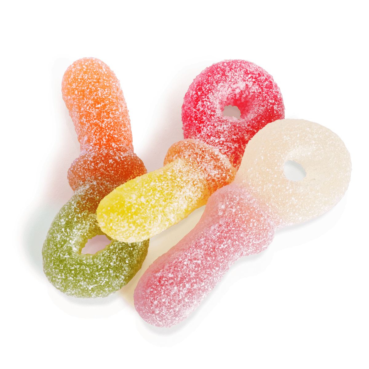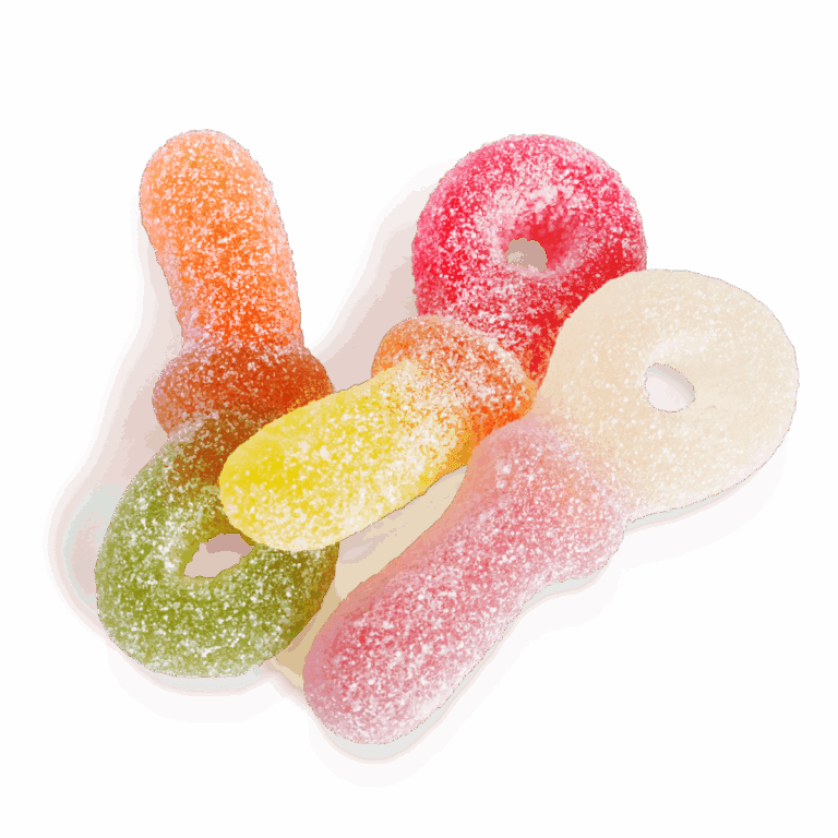 Glucose syrup, sugar, water, gelatine, acids (lactic acid, malic acid), acidity regulator (sodium malates), flavourings, concentrate (pineapple, spirulina, safflower, orange), colours (carmines, curcumin, anthocyanins).