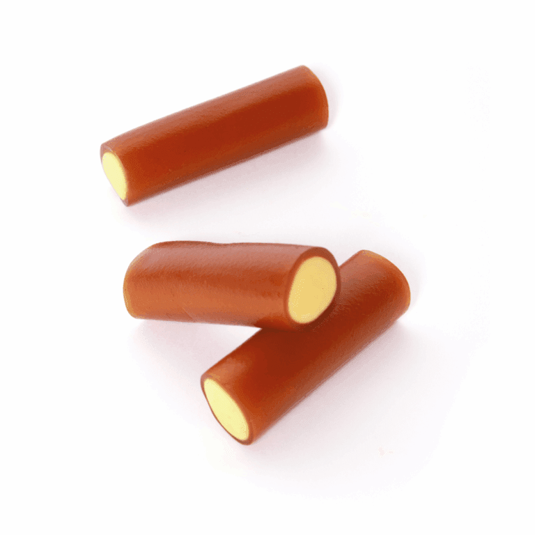 Sugar, glucose-fructose syrup, WHEAT flour (gluten), modified maize- and potato starch, fully hydrogenated vegetable fats (palm kernel, coconut), humectant (glycerol), emulsifier (mono- and diglycerides of fatty acids), thickener (gum arabic), acid (malic acid), salt, colors (carmine, curcumin), flavorings, vegetable oil (coconut, rapeseed), glazing agent (carnauba wax), antioxidant (ascorbic acid). filling 50%