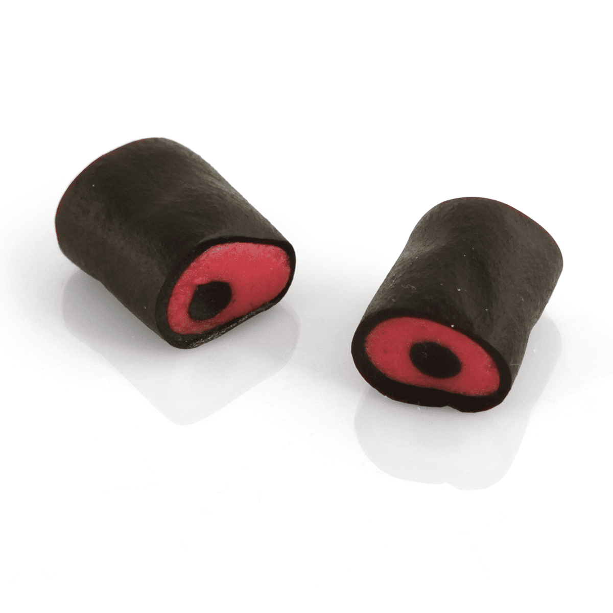 Sugar, glucose-fructose syrup, syrup, WHEAT flour (gluten), modified maize- and potato starch, ammonium chloride, salt, fully hydrogenated vegetable fat(palm kernel, coconut), licorice extract, humectant (glycerol), thickener(gum arabic), emulsifier (mono- and diglycerides of fatty acids),colors (carmine), acid(citric acid), flavorings, vegetable oils (coconut, rapeseed), glazing agent (carnauba wax). Fondant filling 45%