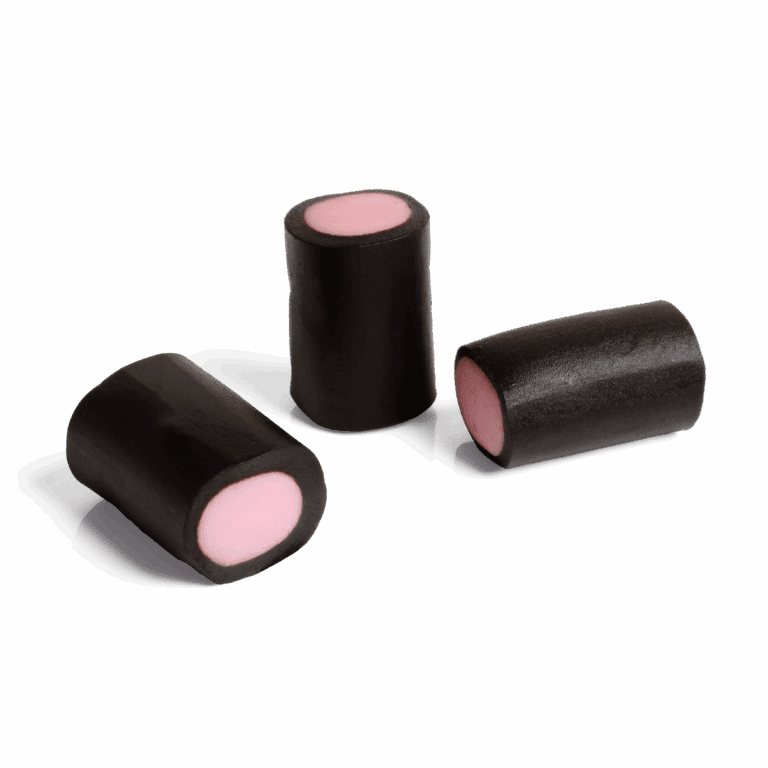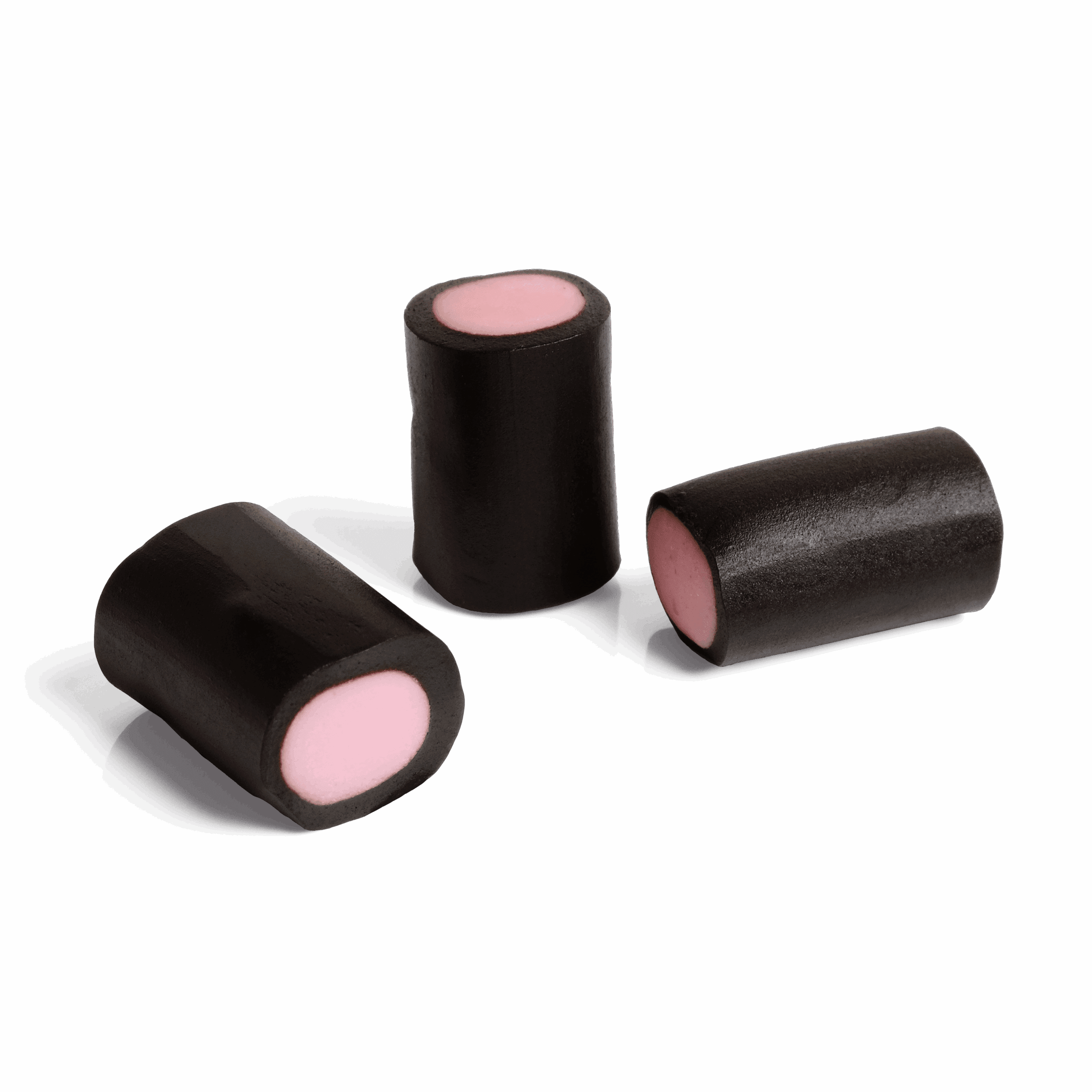 Sokeri, glukoosisiirappi, vehnäjauho, melassi, kokonaan kovetettua kookosrasvaa, glukoosi-fruktoosisiirappi, kosteudensäilyttäjät (sorbitoli, glyseroli), lakritsiuute, liivate, happo (omenahappo), väriaineet (E153, E120), luonnolliset aromit, suola, kasviöljyt (kookos, rapsi), pintakäsittelyaine (mehiläisvaha), kookosrasva.
