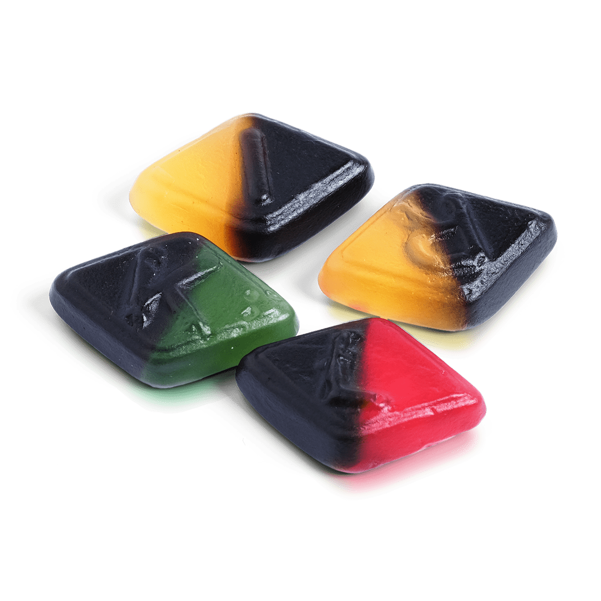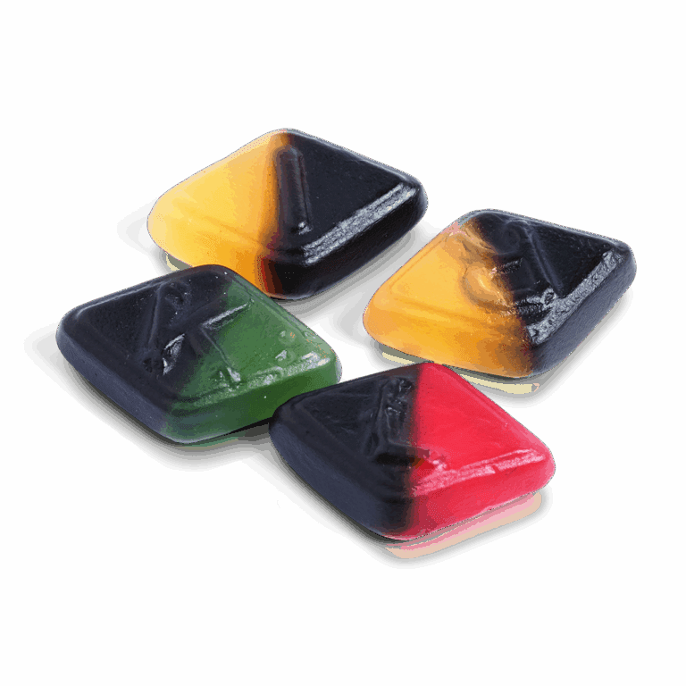 glukoosisiirappi, sokeri, muunnettu tärkkelys, liivate, stabilointiaine (sorbitoli), lakritsiuute, ammoniumkloridi (=salmiakki), happo (sitruunahappo), suola happamuudensäätöaine (E331), aromi, kasviöljyt (kookos, rapsi), väriaineet (kasviperäinen lääkehiili, karmiininpunainen, kuparikomplekseja klorofyllien, beetakaroteeni), pintakäsittelyaine (karnaubavaha).