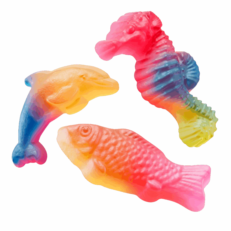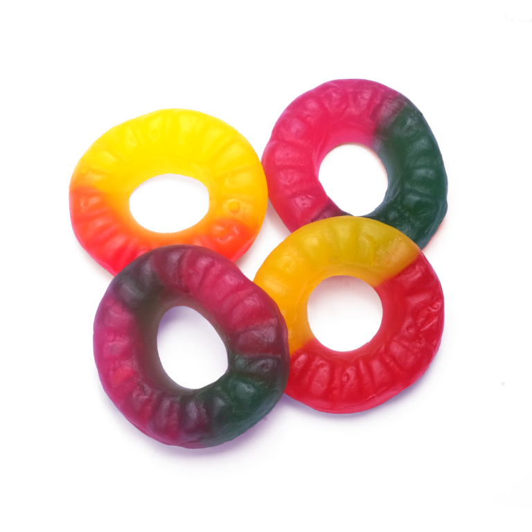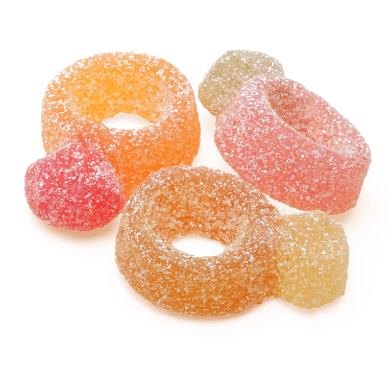 glykosesirup, sukker, stivelse, modifisert stivelse, syre (sitronsyre), modifisert ertestivelse, naturlig aroma, konsentrat (spirulina, søtpotet, eple, reddik, kirsebær), vegetabilske oljer (kokos, raps), surhetsregulerende middel (natriumsitrat), overflatebehandlingsmiddel (karnaubavoks), fargestoffer (paprikaekstrakt, kurkumin, Kobber komplekser av klorofyll).