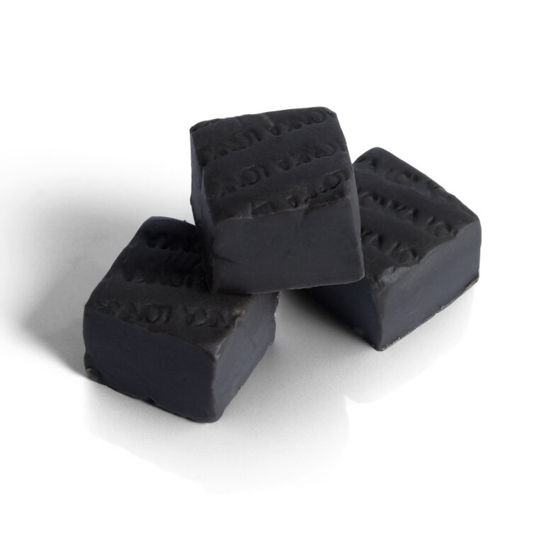 sukker, glykosesirup, fullherdet kokosfett, skummet MELKEPULVER, lakrisekstrakt (0,8%), salt, emulgator (SOYALECITIN), fargestoff (E153), naturlig aroma. Kan inneholde spor av PEANØTTER, NØTTER og EGG.