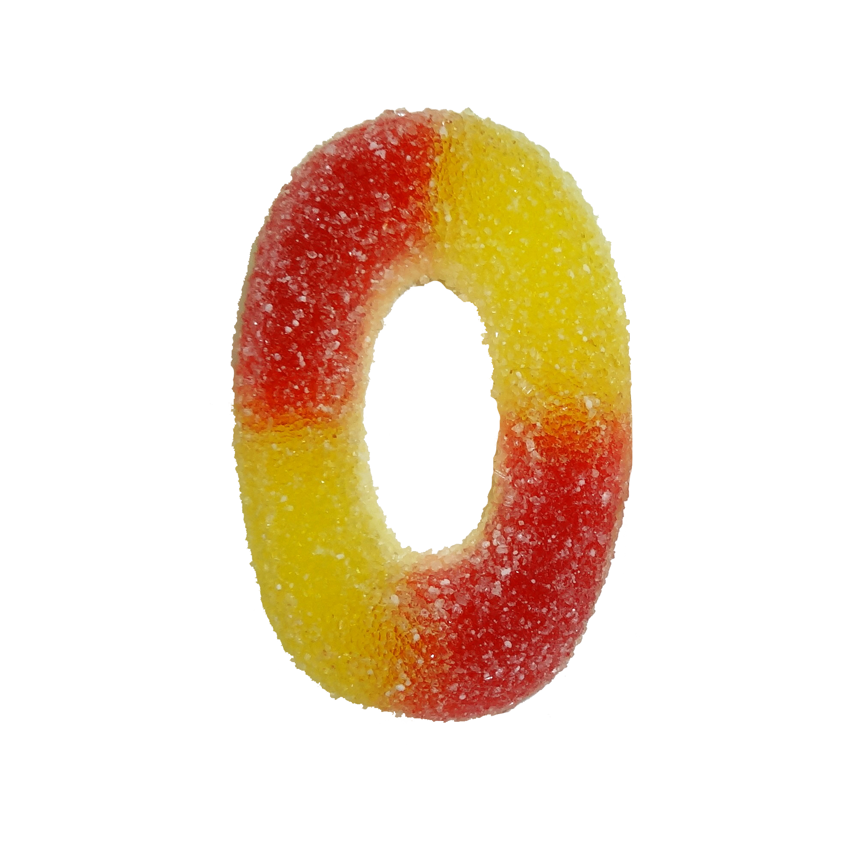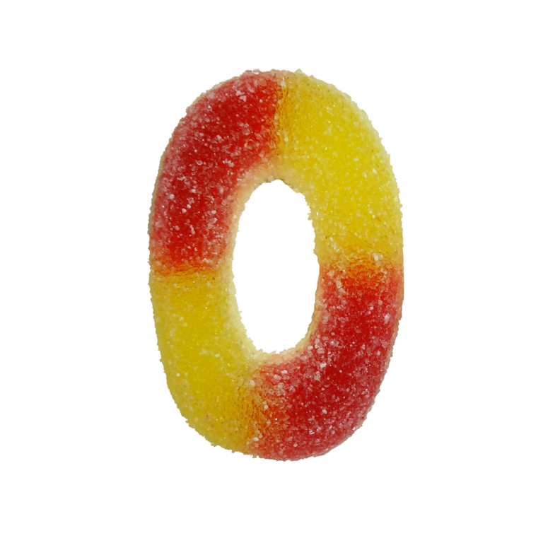 glykosesirup, sukker, fersken juice koncentrat 5%, gelatin, surhetsregulerende middel (sitronsyre), syrer, (E270, E297), fortykningsmiddel (pektin), konsentrat fra (svart gulrot, gurkemeie), naturlig aroma.