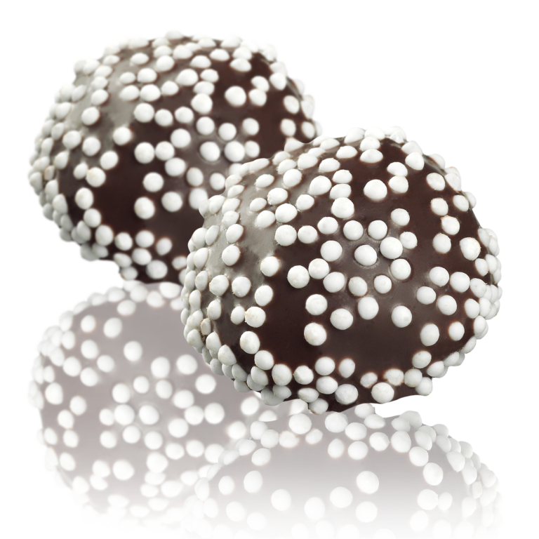 Sukker, vegetabilsk fett/vegetabilske oljer (rapsfrøolje, fullherdet vegetabilsk olje (kokos/raps), kakaosmør), vann, glykosesirup, glukose-fruktosesirup, kakaopulver, HVETESTIVELSE, aroma (bl.a. vanillin), emulgator (SOYALECITIN), overflatebehandlingsmiddel (bivoks). Kan inneholde MELK og NØTTER.