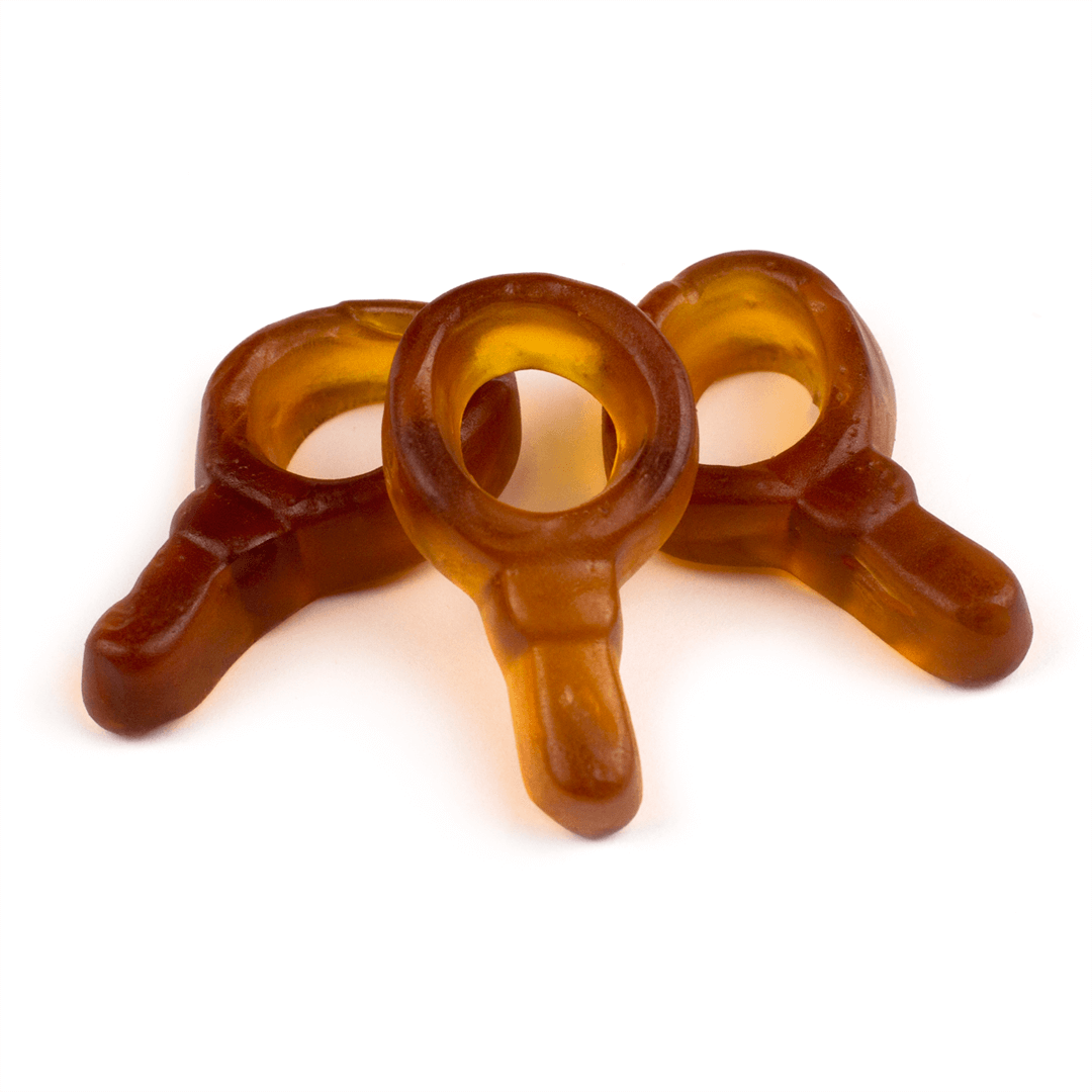 glukossirap, socker, gelatin, dextros, syra (citronsyra), karamelliserad sockersirap, arom, solrosolja, palmolja, ytbehandlingsmedel (bivax, karnaubavax).