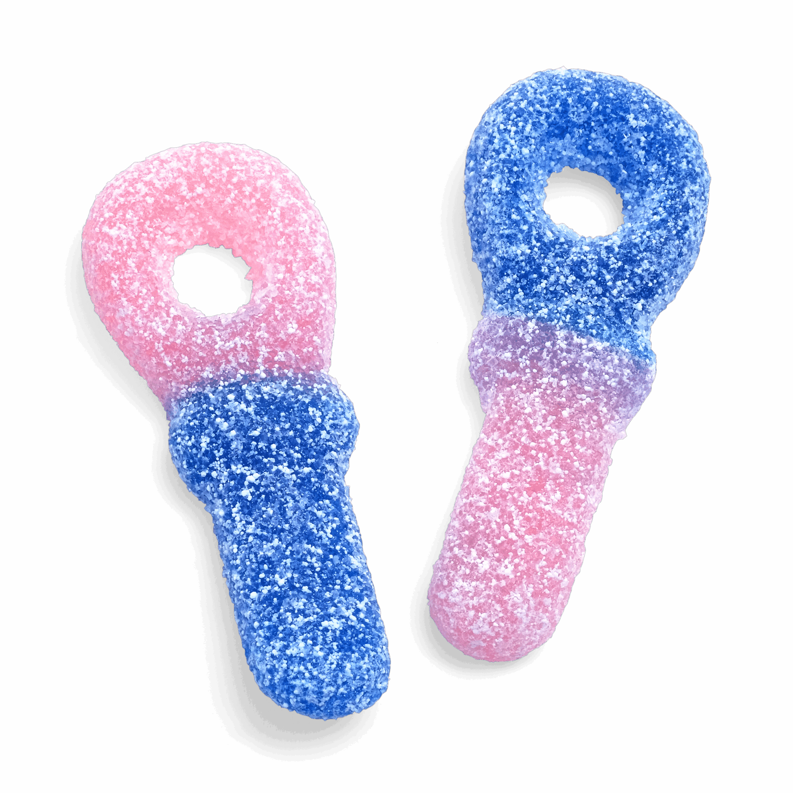 socker, glukossirap, VETESTÄRKELSE, vatten, modifierad majsstärkelse, syror (E270, E296, E330, E350), modifierad potatisstärkelse, surhetsreglerande medel (E500), arom, färgämne (E133), svart morotsjuicekoncentrat.