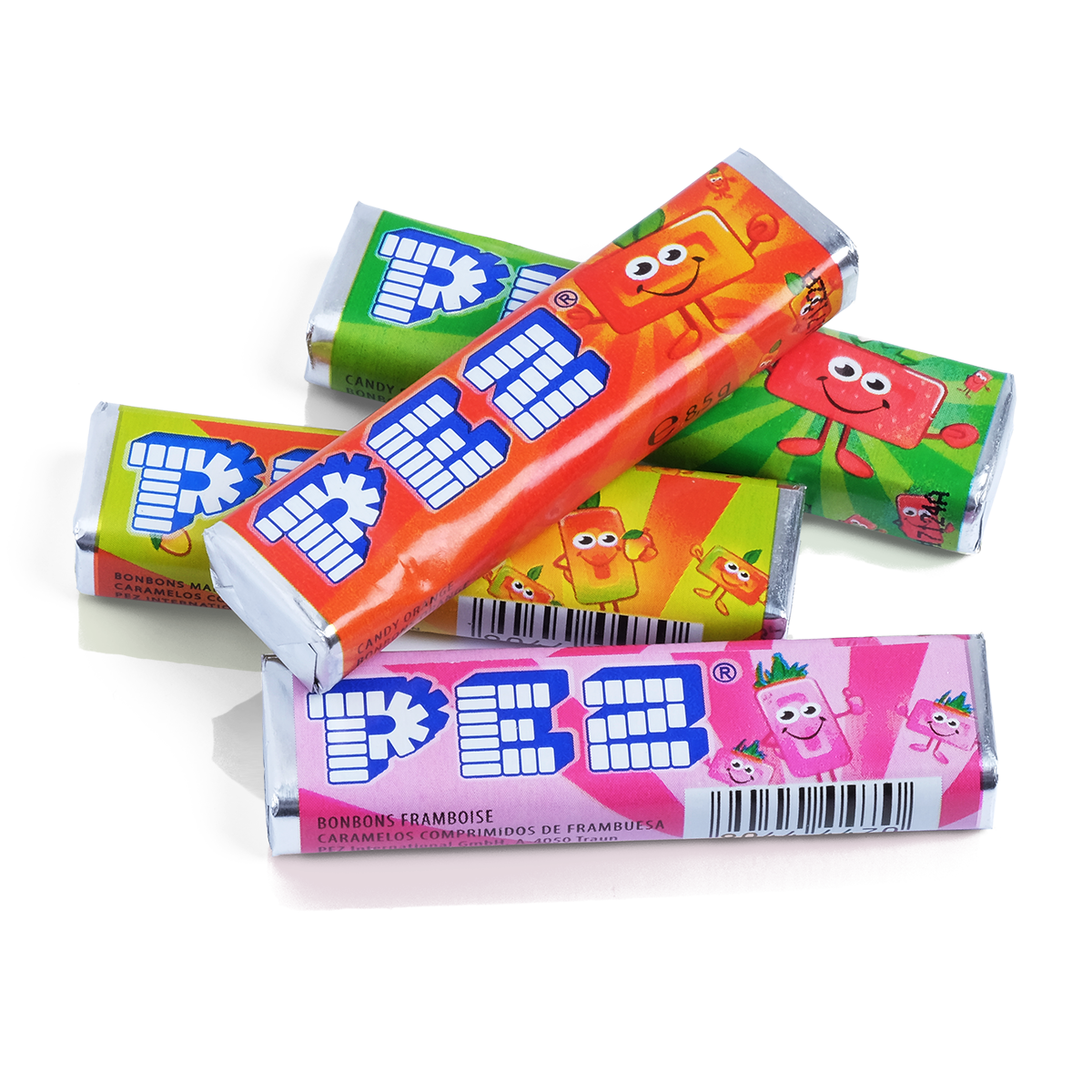 cola arom: Socker, glukossirap, syror (citronsyra, vinsyra (L(+)-)), surhetsreglerande medel (natriumcitrat), natriumkarbonat, fullhärdat palmfett, emulgeringsmedel (mono- och diglycerider av fettsyror), arom. Frukt arom: Socker, glukossirap, syra (citronsyra), surhetsreglerande medel (natriumcitrat), fullhärdat palmfett, emulgeringsmedel (mono- och diglycerider av fettsyror), aromer, frukt- och grönsakskoncentrat (äpple, svartvinbär, morot, safflor, svart morot, sötpotatis, druva, citron).