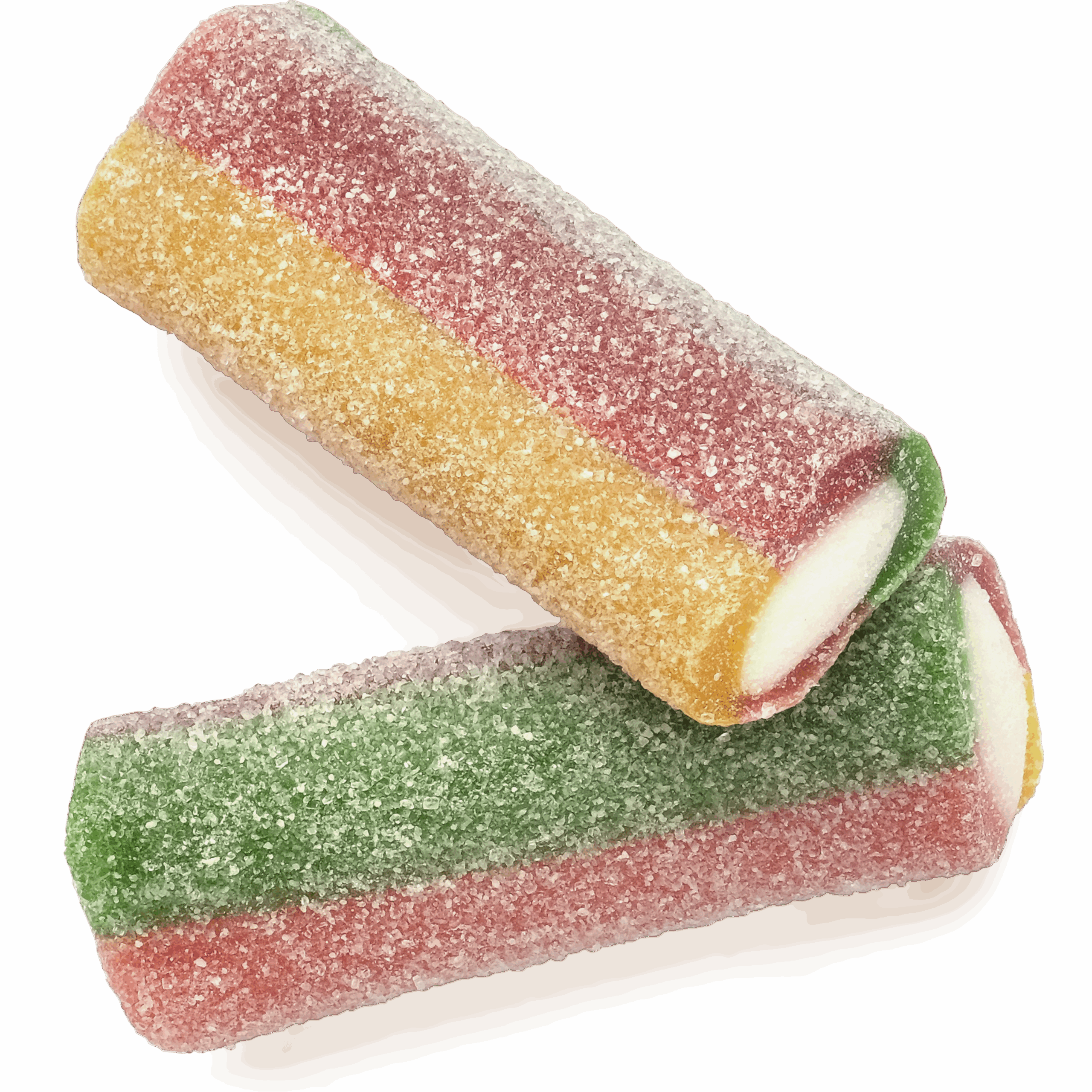 Socker, glukos-fruktossirap, invertsockersirap, VETEMJÖL (innehåller GLUTEN), majsstärkelse, kokos vegetabiliskt fett, fuktighetsbevarande medel (glycerol), syror (citronsyra, äppelsyra, mjölksyra), potatisstärkelse, gelatin, aromer, surhetsreglerande medel (natriumlaktat, kaliumcitrat), salt, frukt- och grönsakskoncentrat (morot, hibiskus, svartvinbär), färgämnen (E100, E133). Kan innehålla spår av MJÖLK, SOJA och SENAP.