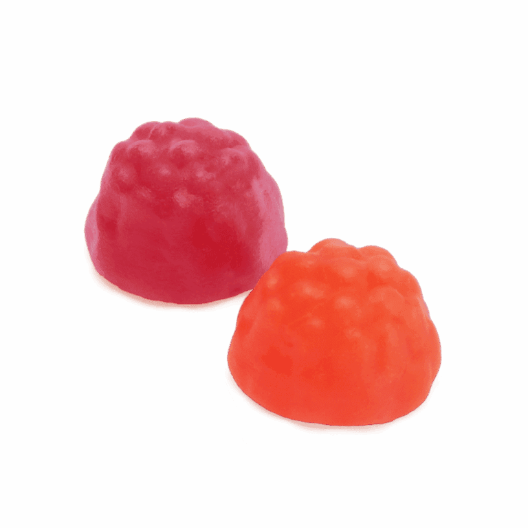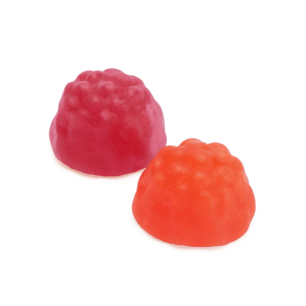 socker, glukossirap, glukos-fruktossirap, stärkelse, syra (citronsyra), surhetsreglerande medel (natriumcitrat), koncentrat från (svart morot), vegetabiliska oljor (kokos, raps), aromer, ytbehandlingsmedel (bivax), färgämne (E160e).