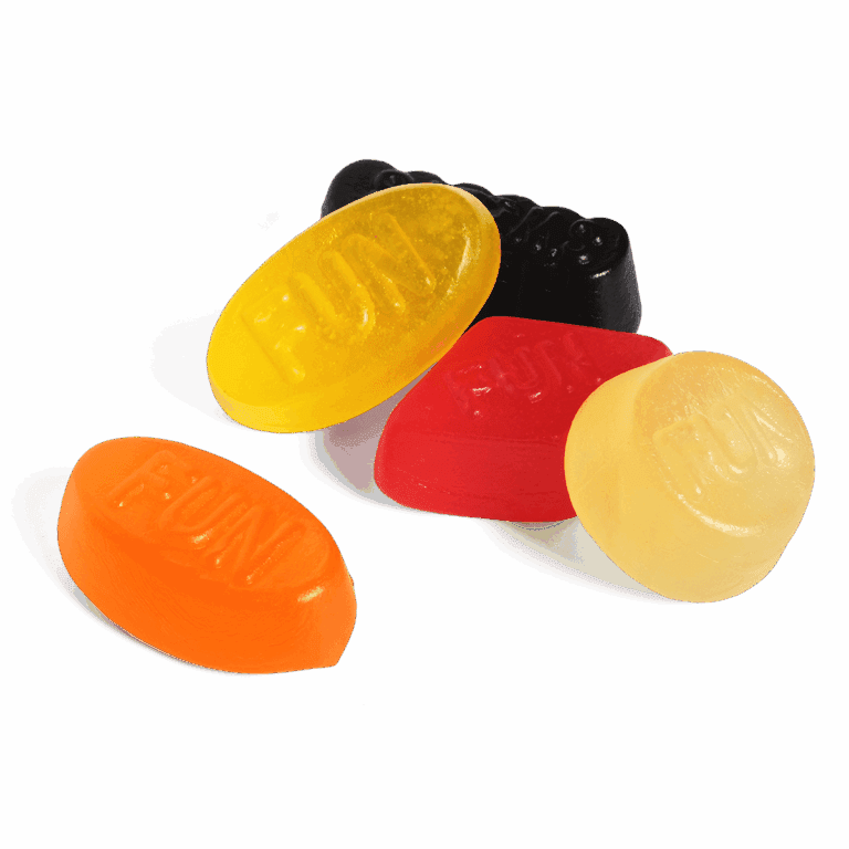 glukossirap, socker, vatten, VETESTÄRKELSE, gelatin, modifierad potatisstärkelse, syror (E270, E296, E330), aromer, färgämnen (E100, E153, E160c), svart morotsjuicekoncentrat, vegetabilisk olja (kokos), ytbehandlingsmedel (karnaubavax), koncentrat från (spirulina, safflor).
